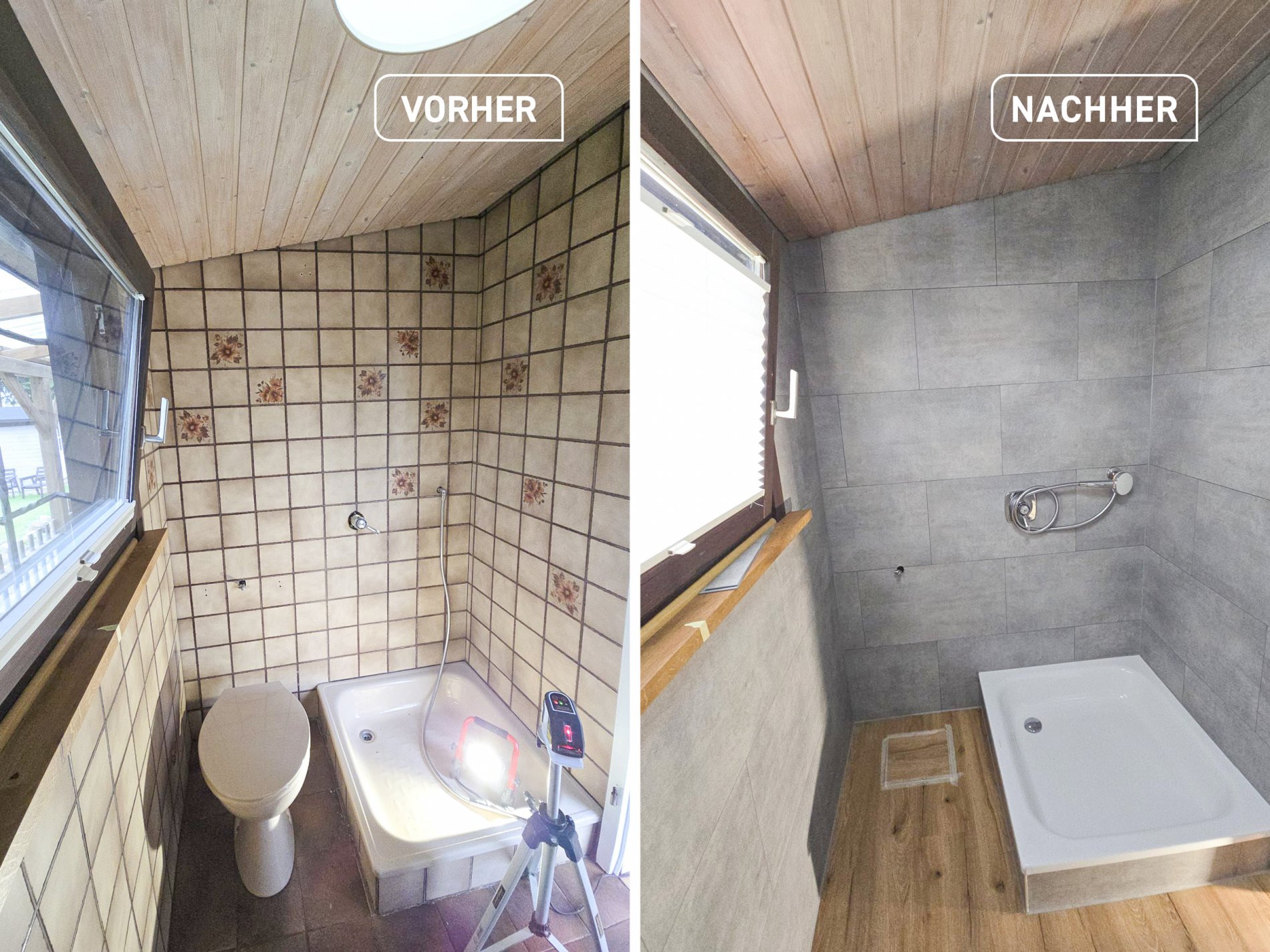 Und das im Handumdrehen. Hier zeigen wir dir ein echtes Vorher-Nachher-Projekt, das beweist, wie viel Wirkung in einer durchdachten Badsanierung steckt. Aus einem in die Jahre gekommenen Raum wurde mit wenigen Handgriffen eine moderne, stilvolle Wohlfühloase – ohne Fliesenlärm und Baustellenchaos. Der direkte Vergleich spricht für sich, oder?