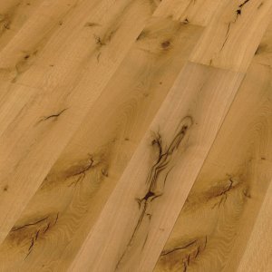 Aus 100 Prozent Holz gefertigt und damit natürlich – kein Wunder, dass Parkettböden immer beliebter werden. Diese Dielen sind sogar handgehobelt und damit ein absolutes Unikat. Die strukturierte Oberfläche und die natürliche Optik schaffen eine behagliche Atmosphäre. Klassisch und authentisch sorgt er für Gemütlichkeit in Wohnzimmer, Ess- oder Schlafbereich, Flur oder Küche. Er ist ökologisch, fußwarm, sowohl für Allergiker als auch für die Fußbodenheizung geeignet und reguliert und verbessert das Raumklima, weil er laufend Feuchtigkeit aufnimmt und wieder abgibt. Die Verlegung ist einfach.
