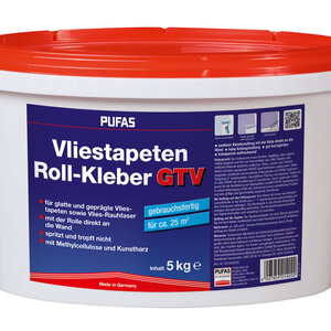Für Vliestapeten gibt es speziellen Kleister. Wir führen Kleister der Firma Pufas und den GTV Rollkleber zum anrühren oder (Empfehlung!) fertig im Eimer als 5 kg oder 10 kg Gebinde.